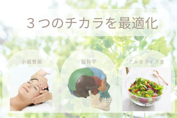 ①構造的は美容矯正による身体の状態チェック②化学的は陰陽アルカライズによる食のバランスチェック③心理的はインナーエレメントリーディングによる命式エネルギーチェック更年期の心身の不調を三要素から考察し、一人一人異なるお悩みに対して、オーダーメイドで原因を探してゆきます。